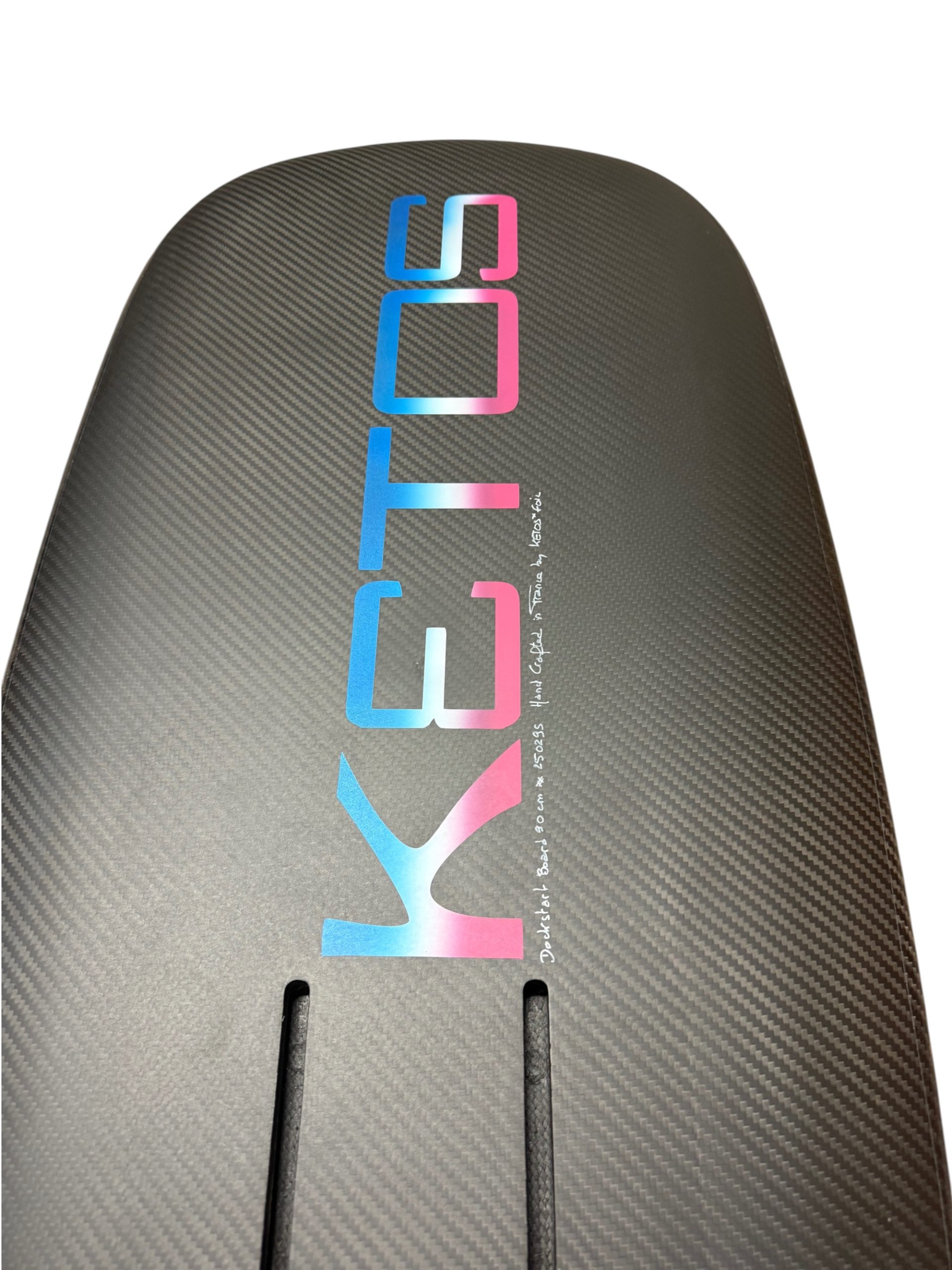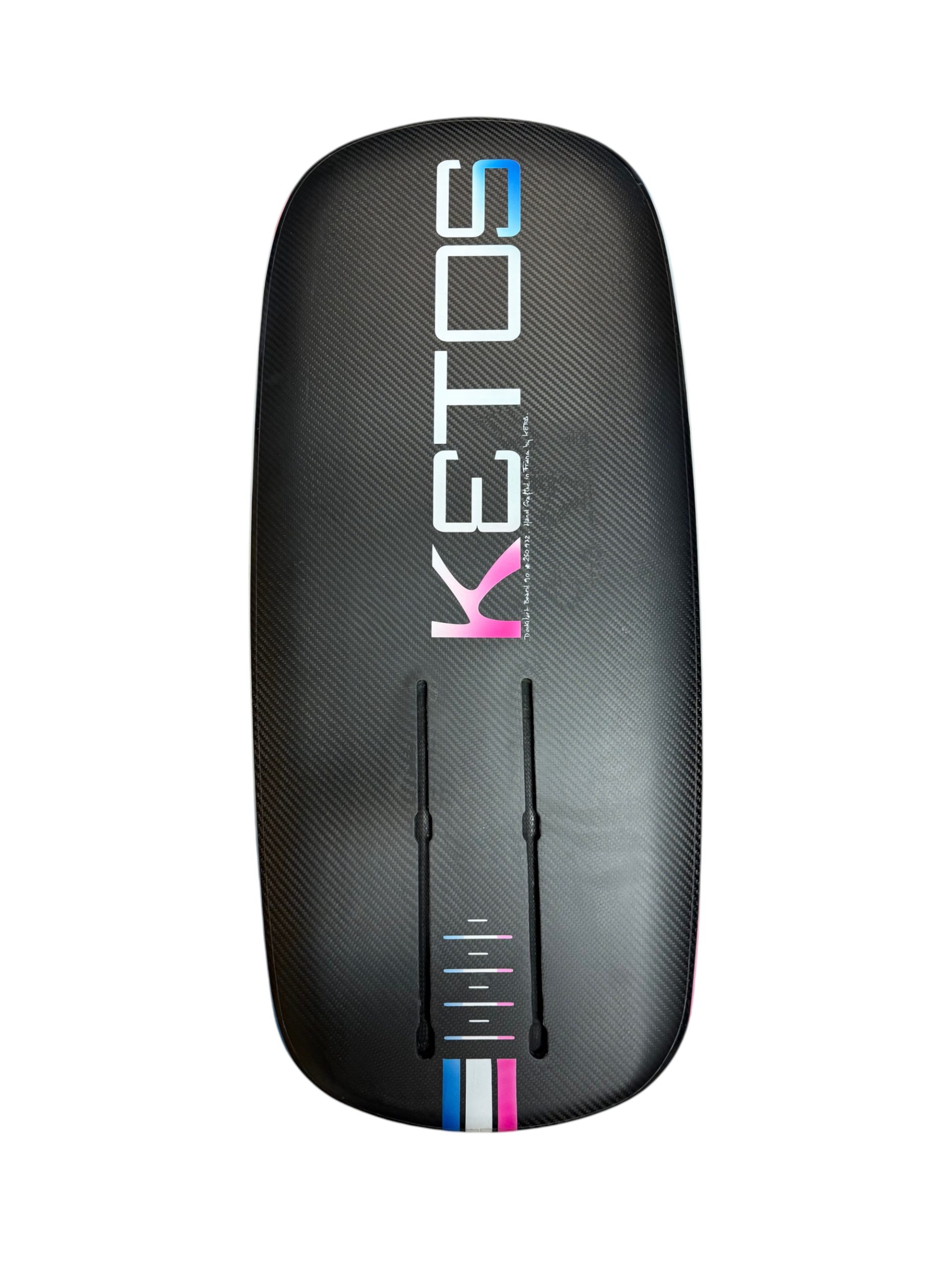 Poids plume : <1.6 kg Design : Faible rocker, pont concave, rails US double entrée full carbone ou KF Box. Matériaux : Core Airex 20 mm, carbone GreenPoxy.